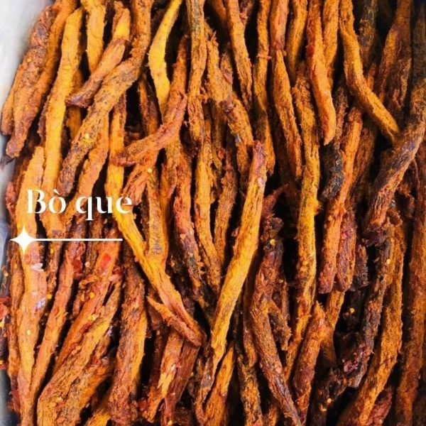 • Bò Khô Củ Chi Cao Cấp được làm từ thịt bò tươi, thái thành từng miếng mỏng, ướp sơ qua với các loại gia vị và đem phơi